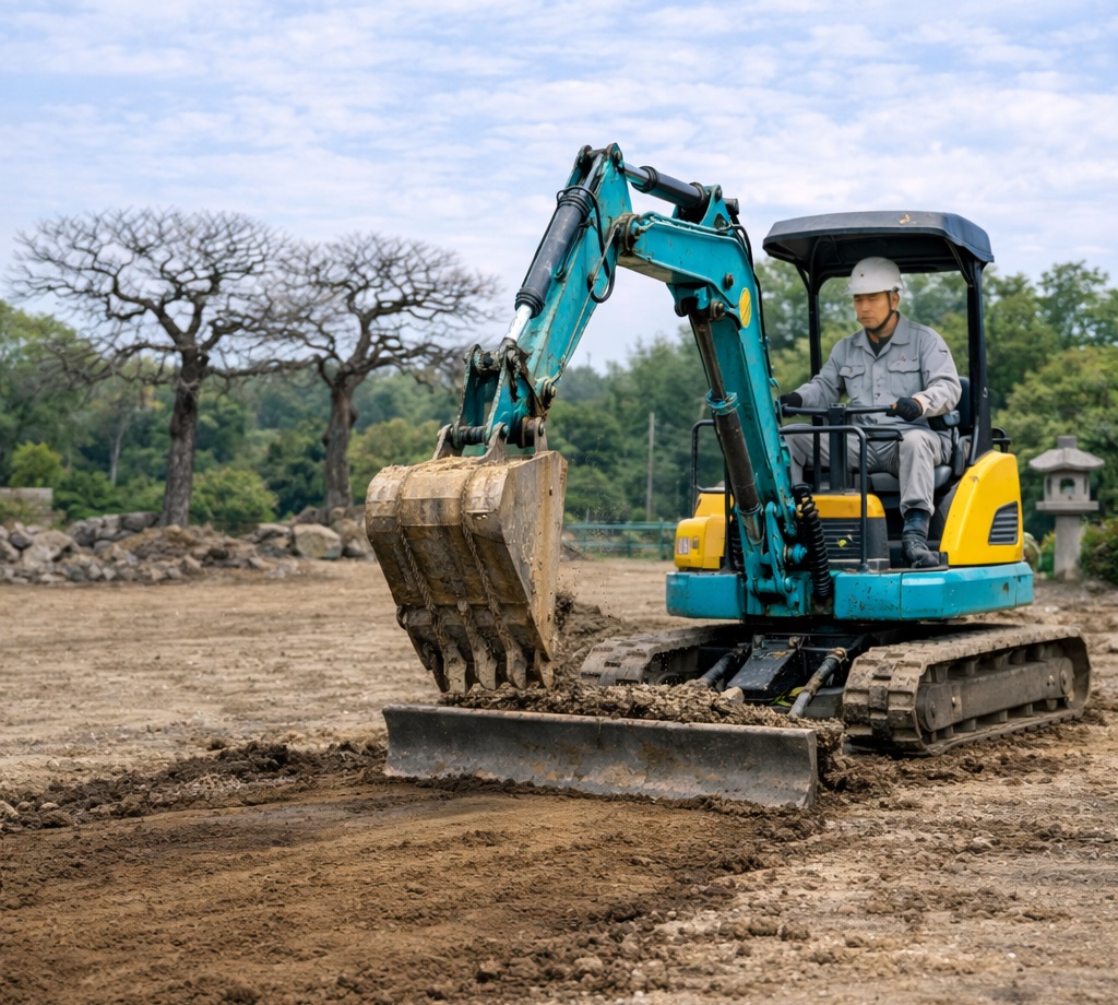 庭木を撤去した後は、掘削跡を丁寧に埋め戻し、地面を平らに整えます。